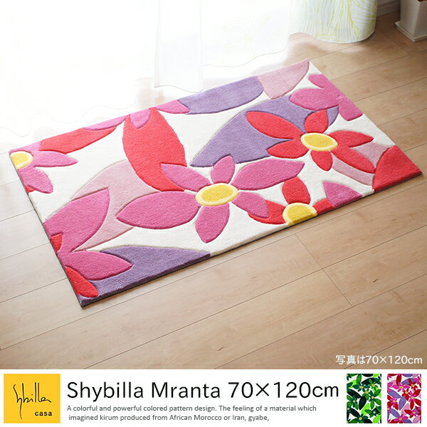 玄関マット 【マランタ】 シビラ 約70cm×120cm Mranta ピンク・グリーン Shybilla 花柄 【玄関 マット】